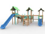 Natural Play PlaygroundsThis system has seven platforms each having different activities.It has a suspension bridge,two different height slides,rope bridge and many other activites.If you ask for motor function this is the system to go for !